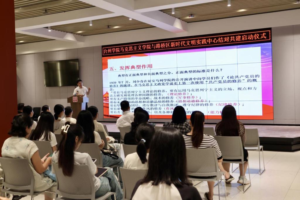 近年来马克思主义学院高度重视大思政课建设和中共党史党建学科建设,此次马克思主义学院与路桥区新时代文明实践中心的结对共建,既是校地协同推动中共党史党建学科理论扎根实践的关键尝试,也是深化大思政课实践赋能育人的重要探索。从中共党史党建学科建设角度看,马克思主义学院可依托路桥区基层实践场景,将地方精神文明建设中的党建经验、红色资源转化为学科研究的鲜活案例,丰富学科本土化研究成果。从大思政课建设角度看,马克思主义学院的理论优势可将党的创新理论、党史知识转化为大思政课的生动教学内容,通过地方阵地让思政教育走出课堂、走进基层,让学生在参与实践中接受思政教育。