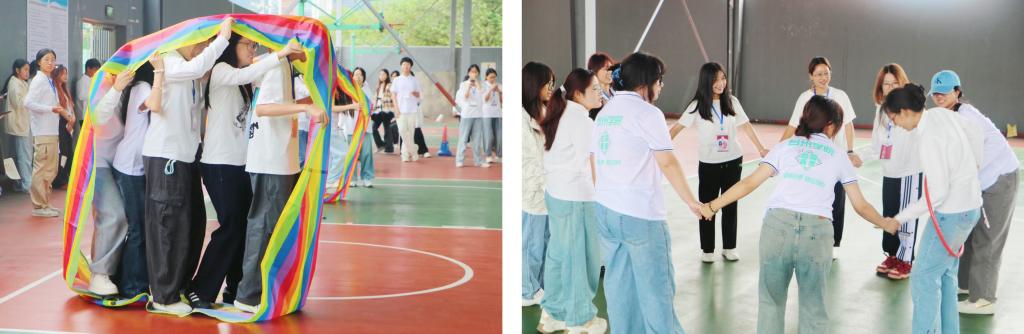 临海校区素拓活动在风雨篮球场开展。各游戏环节紧密贴合团队建设核心需求:“为全员不一致”培养成员面临困难时的应变能力;“珠行千里”强调团队合作中的责任意识;“无敌风火轮”象征组织需统一方向、凝聚合力才能达成共同目标;“呼啦圈穿梭”强化成员间的信任与连接。同学们参与活动热情高涨,互相配合默契,整场活动有效提升了学生组织的向心力与战斗力,打破了学生组织新成员间的陌生感,也让同学们深刻认识到团结合作的重要性,培养了在困难中永不气馁、重整旗鼓的意识品质。