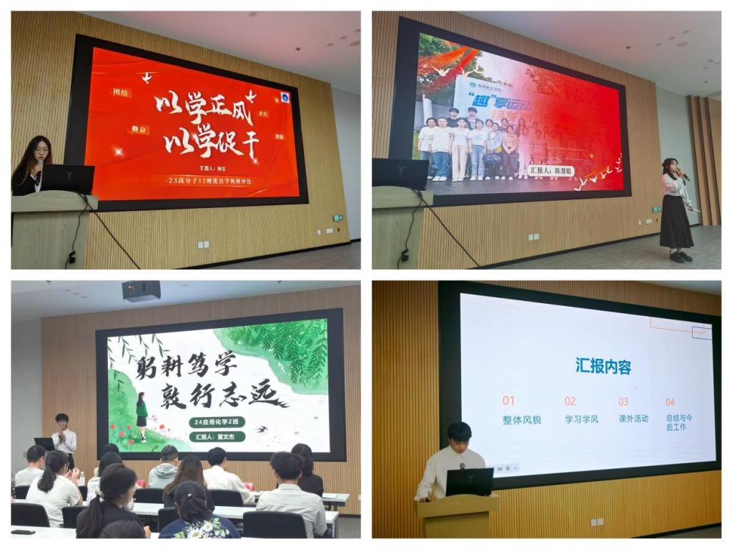 现场汇报时,各班级围绕学习氛围营造、学业成绩提升、创新实践成果、班级文化建设等方面进行交流与展示。在学业成绩方面,全部班级亮出了文化课通过率、班级平均学分绩点、英语四六级通过率等硬核数据,展现了扎实的专业基础;在学术科创方面,同学们在各类学科竞赛、创新创业大赛中的获奖证书、发表的学术论文、申请的专利项目,充分体现了学院学子的科创精神和实践能力;在班级风貌方面,丰富的团日活动、严谨的课堂纪律、暖心的朋辈教育和温馨的班级文化,彰显了医化学子团结合作、奋勇向上的精神风貌。