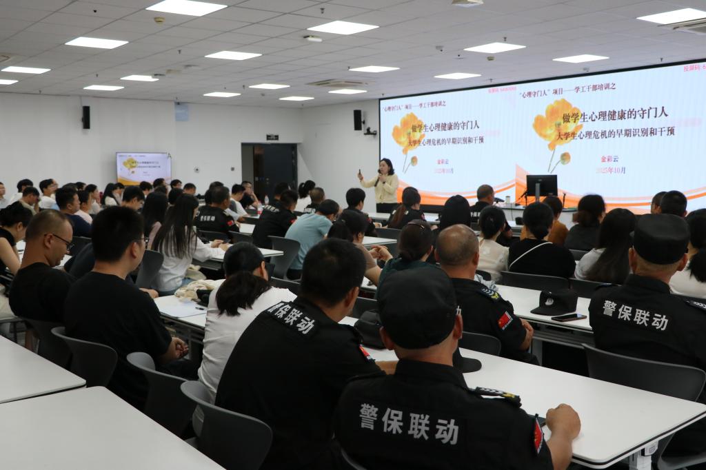 为织密校园心理健康防护网,提升学工队伍对心理危机事件的敏锐感知与专业应对能力,校党委学工部心理健康教育与咨询中心于近日开展“心理守门人”专题培训。各二级学院副书记、辅导员、班主任、研究生导师及安保宿管200余人参加培训。