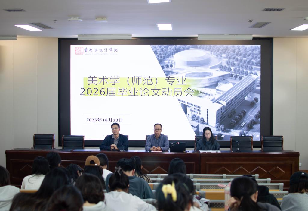 10月23日,艺术与设计学院召开2026届美术(师范)专业毕业论文动员大会暨师生见面会。学院副院长赵振华、美术系主任徐海军、副主任陈林与全体毕业生及论文导师齐聚一堂,在这场关于艺术探索与学术传承的活动中,为学子们的新阶段赋予灵感与展望。