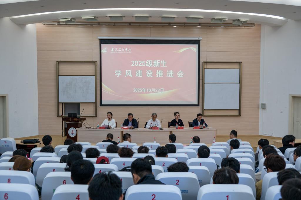 为深入贯彻落实立德树人根本任务,扎实推进学风建设内涵式发展,助力新生全面发展与成长成才,10月23日下午,建筑工程学院召开新生学风建设推进会。学院院长王小岗、党委书记潘瑛,副院长熊浩、何海杰,学科主任、班主任及全体2025级新生参加会议。会议由学院党委副书记汤爽主持。