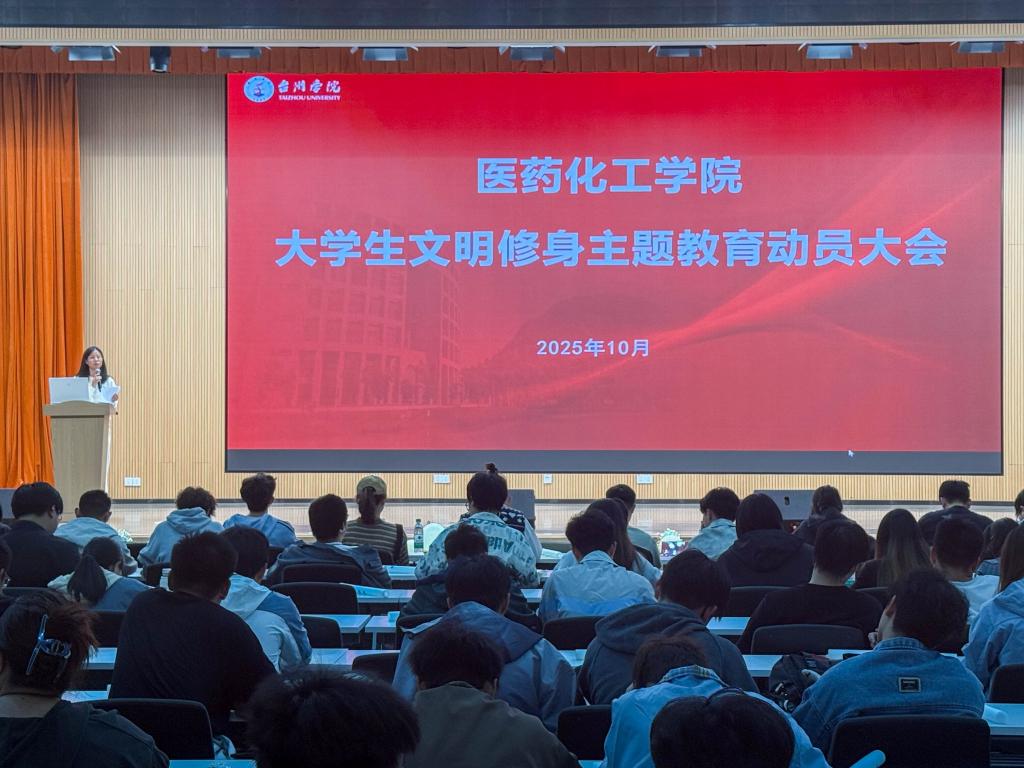 为进一步加强大学生思想政治教育,提升学生思想道德素质与文明素养,营造文明、和谐、健康的校园文化氛围,10月26日晚,医化学院大学生文明修身主题教育动员大会在椒江校区科技楼328会议室顺利举行。学院党委副书记刘贵花出席活动,各年级辅导员、主要班委、全体团学会成员及25级学生代表参加。