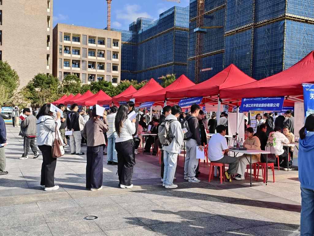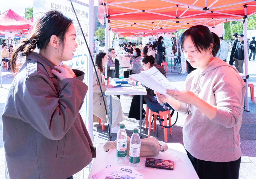 为搭建校企人才供需对接桥梁,推动药学院2026届毕业生高质量充分就业,10月29日,药学院联合医药化工学院、生命科学学院在椒江校区青年广场举办专场招聘会。药学院院长胡金锋、党总支副书记高阳深入招聘会现场,2026届全体毕业生及部分其他年级学生参加招聘会。