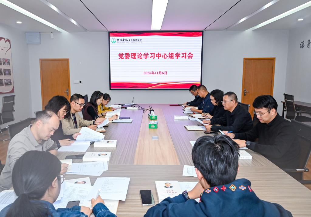 11月6日,生命科学学院召开党委理论学习中心组学习会,专题学习习近平总书记在党的二十届四中全会上的重要讲话和全会精神,传达学习学校党委扩大会议精神和部署要求,集中学习《习近平谈治国理政》第五卷有关专题。学院党委书记郑晓莉主持会议,学院党委委员、各党支部书记参加。