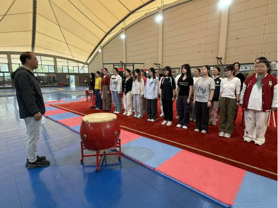 检查组观看了椒江校区鼓队的排练实况,队员们精神抖擞、节奏铿锵,以澎湃如潮的炽热激情,彰显出势不可挡的昂扬气势。检阅组对队伍的整体风貌给予肯定,并就队形编排、节奏把控等细节提出优化建议。检阅组观摩了临海校区健身腰鼓、拉丁舞、舞龙等项目的排练。健身腰鼓队员动作整齐划一、活力四射,拉丁舞表演舒展优美、富有张力,舞龙队伍灵动矫健、气势恢宏,各项目均展现出扎实的训练基础。