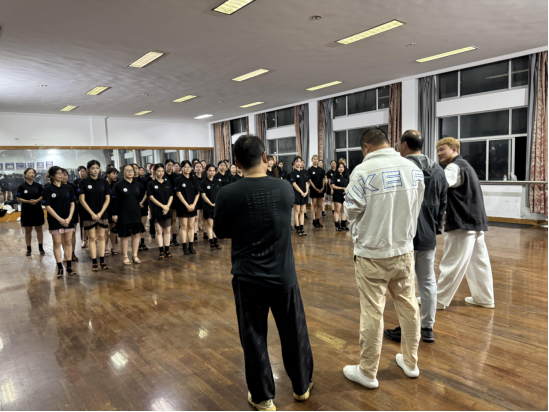 林辉杰对全体参演人员的辛勤付出表示慰问,他结合各项目表现提出针对性的改进意见,强调开幕式是学校精神风貌的集中展示,希望大家以高标准、严要求细化排练,抠好每个动作、抓好每个环节,全力以赴呈现一场精彩、有序、富有特色的开幕式盛典。戴晓捷、吴博也分别从表演衔接、现场效果等方面给出专业指导。
