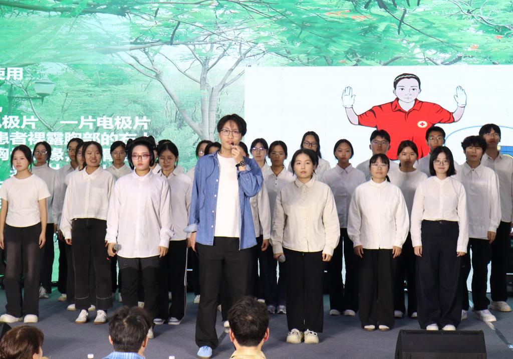 第二篇章“梦驭云帆,星河探医”接续精彩。手语合唱《平凡天使》将歌声与手语巧妙相融,传递出对特殊群体的温暖关怀;情景剧《救援微光伴歌扬》则以“模拟急救+艺术演绎”的创新形式,生动展现医者在危难时刻的责任与担当。