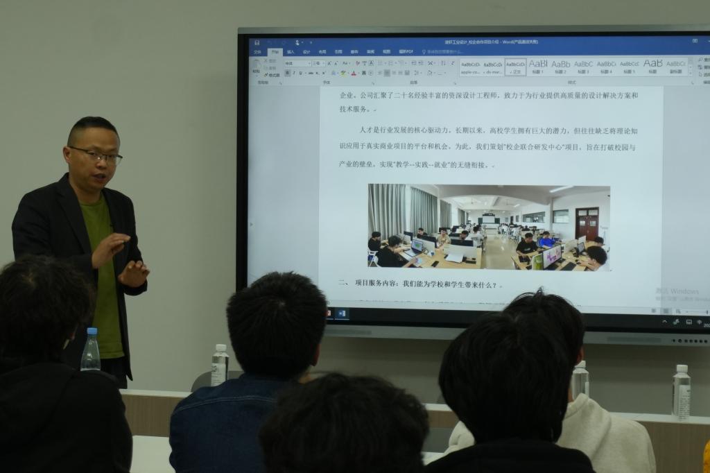 推介会上,张国平介绍了公司的发展历程以及在模具设计与制造方面的技术专长,重点介绍了“真实项目驱动,工程师现场指导,在学习中创造价值”培养理念,详细介绍了基于校企联合研发项目培养工程师人才的培训课程体系和实施方案,分享了多个校企合作项目案例,他表示,公司将以完全公益的形式投入培训师资力量和课程资源,根据学生个人发展兴趣,协同学校培养适配企业需求的高水平工程技术人才,促进学生高质量就业。希望通过校企合作,搭建一个融合研发、实践与创新的平台,为学生提供更多参与实际工程项目的途径。在小组讨论环节,他针对学生关心的未来发展就业和企业项目实践等方面问题做了耐心讲解引导。