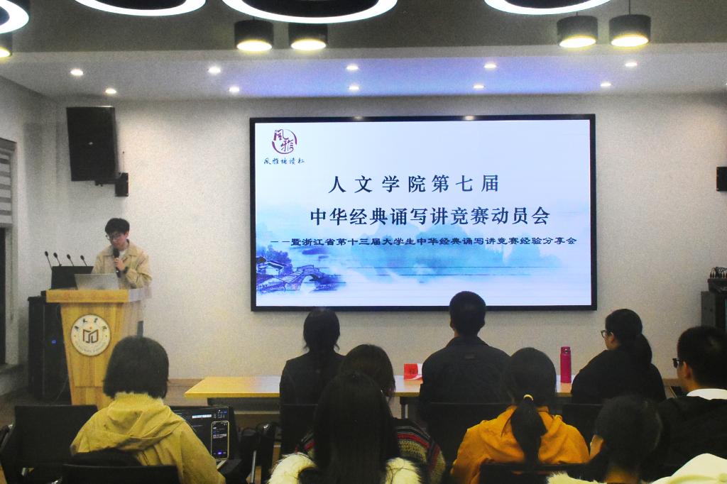 为引领青年学子品读中华经典、涵养人文底蕴,并进一步扩大赛事影响力,11月13日晚,人文学院中华经典诵写讲竞赛动员会在广文书院多功能厅顺利举行。