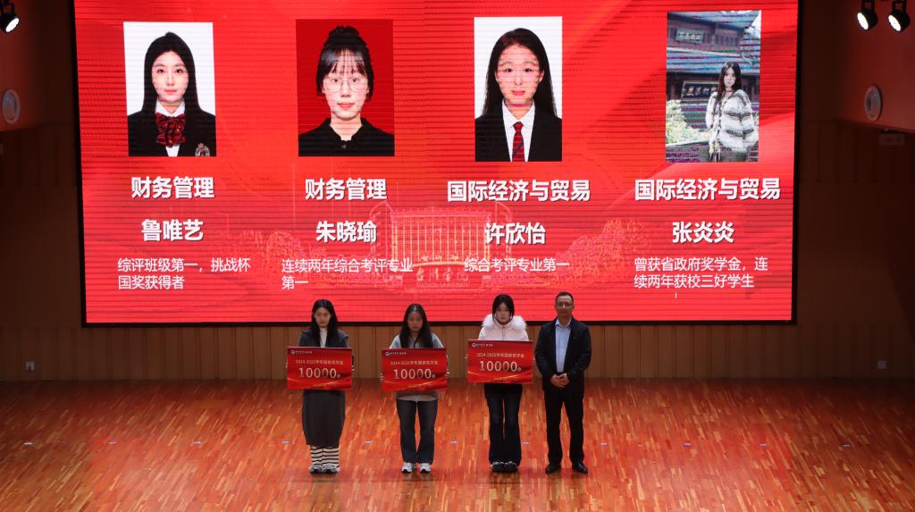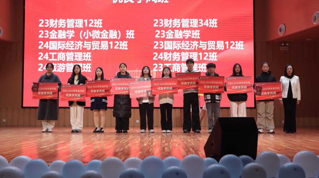 活动伊始,商学院依次为获得国家奖学金、浙江省政府奖学金、“三台”特等奖学金、校一等奖学金、优良学风班等奖项的个人和团队进行表彰,并宣读在创新创业、学科竞赛中获得国奖和省奖同学以及考取研究生、公务员等毕业生,激励更多同学不断追求卓越,勇攀高峰。