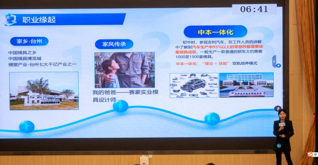 决赛设“成长”与“就业”双赛道,适配不同阶段学生职业发展需求。成长赛道上,选手们立足职业目标,清晰勾勒具体的学习实践行动路径,如材料科学与工程学院李雯雯以《让中国的“工业之母”精起来》为题,立志深耕注塑模具设计领域,助力制造业转型升级;就业赛道上,选手们紧扣目标岗位胜任力要求,突出个人综合素质与目标职业的契合度,如艺术与设计学院的唐伟博以《打造中国婴童专属童鞋——做优秀童鞋设计师》为题,展示扎实的专业知识、技能以及丰富的实习实践经历,致力守护儿童足部健康。