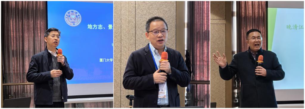 在主旨演讲环节,三位专家围绕地方史研究的关键议题展开深入探讨。厦门大学历史与文化遗产学院钞晓鸿教授作《地方志、景观及其研究反思》报告,上海大学历史学系舒健教授分享《港口、佛寺与使节:宋元时期台州与高丽的交往研究》,浙江工商大学历史系杨齐福教授以《晚清江南士人管庭芬的藏书活动》为题展开分析。三场报告视野开阔、材料扎实,为地方史研究提供了新的启发。
