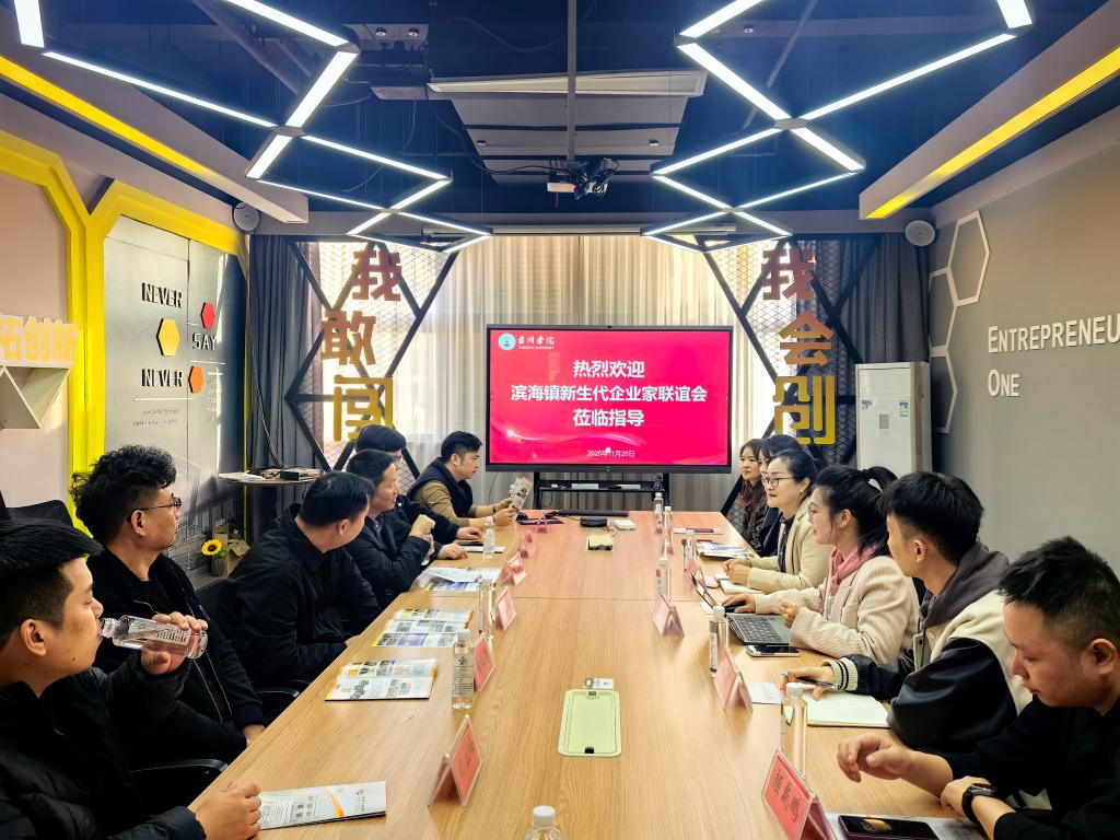 为深化校企合作、助力青年创新创业,11月25日下午,滨海镇新生代企业家联谊会代表在镇党委委员林建勇的带领下,走进大学生创业园,开展实地考察与交流活动。创业学院院长周瑶热情接待并全程陪同。创业学院副院长李银丹参与座谈。双方围绕创业项目孵化、资源对接、产学研融合等议题展开深入探讨。