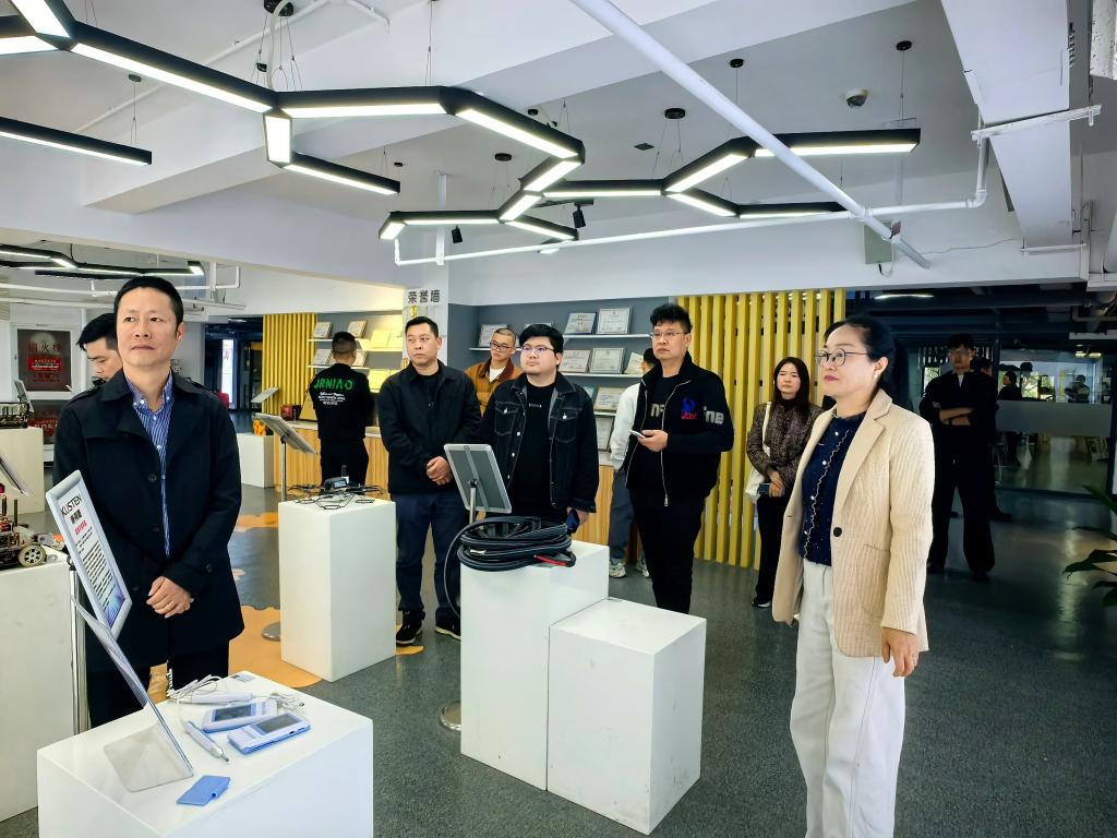 在周瑶陪同下,联谊会成员参观了椒江校区大学生创业园,了解了园区基本情况,并与入驻园区的创业大学生就项目技术突破点、商业化进展及未来规划进行了深入交流。