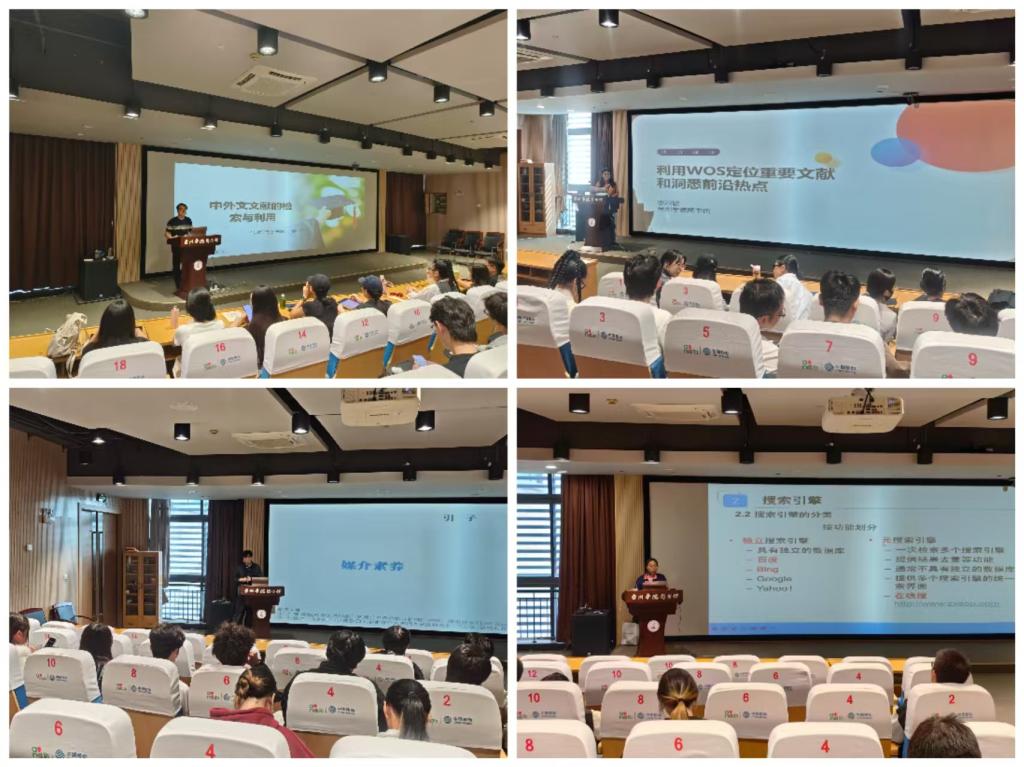 本次专题活动以七场系列讲座组成。从9月至11月,图书馆深入学院调研,精准锚定不同学生群体的学习与学术需求,采用“本科生预约式”和“研究生订阅式”等形式,由图书馆信息咨询部馆员主讲,重点介绍知网新平台功能、ScienceDirect检索技巧、利用WOS定位重点文献和洞悉研究热点,以及如何利用AI助力视频剪辑、论文写作等主题,系统性地构建了从资源认知到技术应用的能力阶梯。
