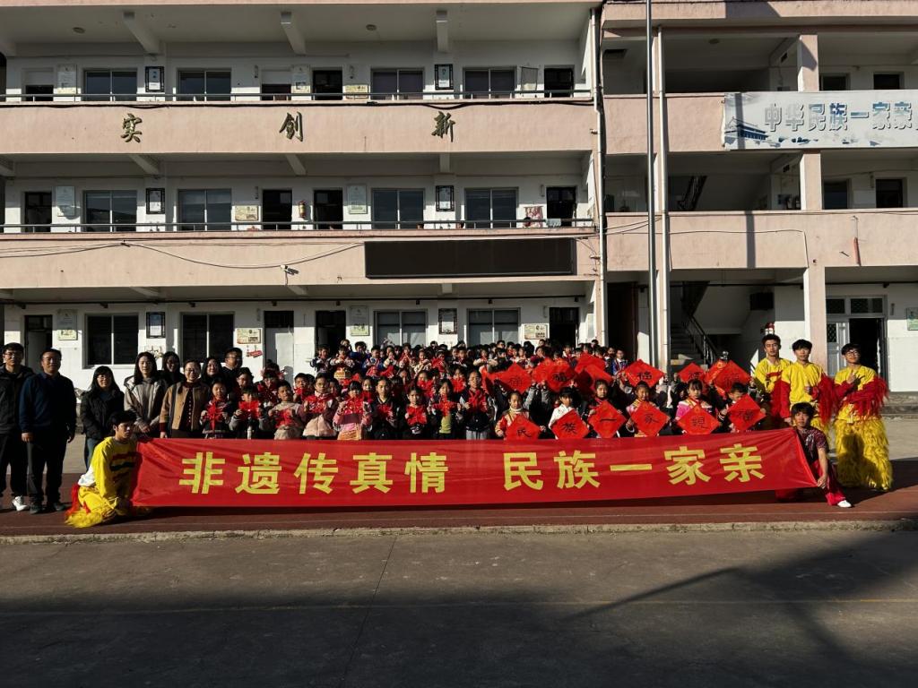 活动尾声,全体党员教师与东溪单小学的同学们齐聚操场,共同定格下温馨的瞬间。大家脸上洋溢着灿烂的笑容,有的同学还摆出刚学会的武术招式,有的则亲昵地依偎在教师身旁,镜头下的每一张脸庞都写满了喜悦与欢快。这张合影不仅记录了活动的精彩纷呈,更凝聚了党员教师与少数民族学生之间的深厚情谊,成为“非遗传真情,民族一家亲”的生动注脚。