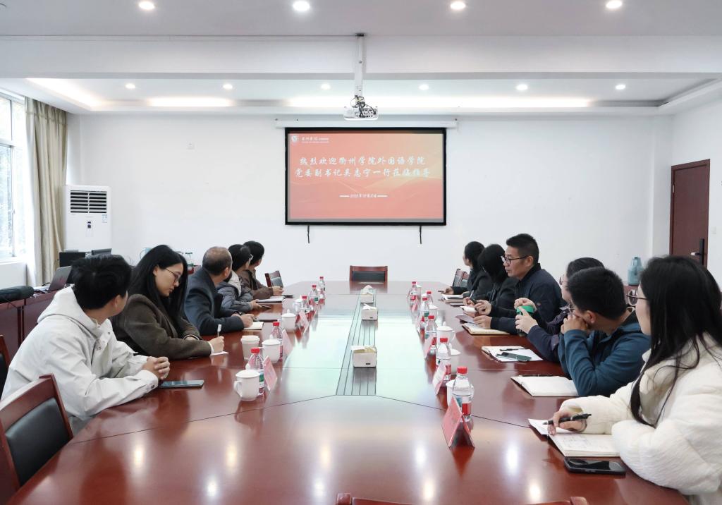 12月8日上午,衢州学院外国语学院党委副书记吴志宁一行来校考察交流。外国语学院党委副书记鲁建波、党委委员房佳婕,全体辅导员参加了此次交流会。