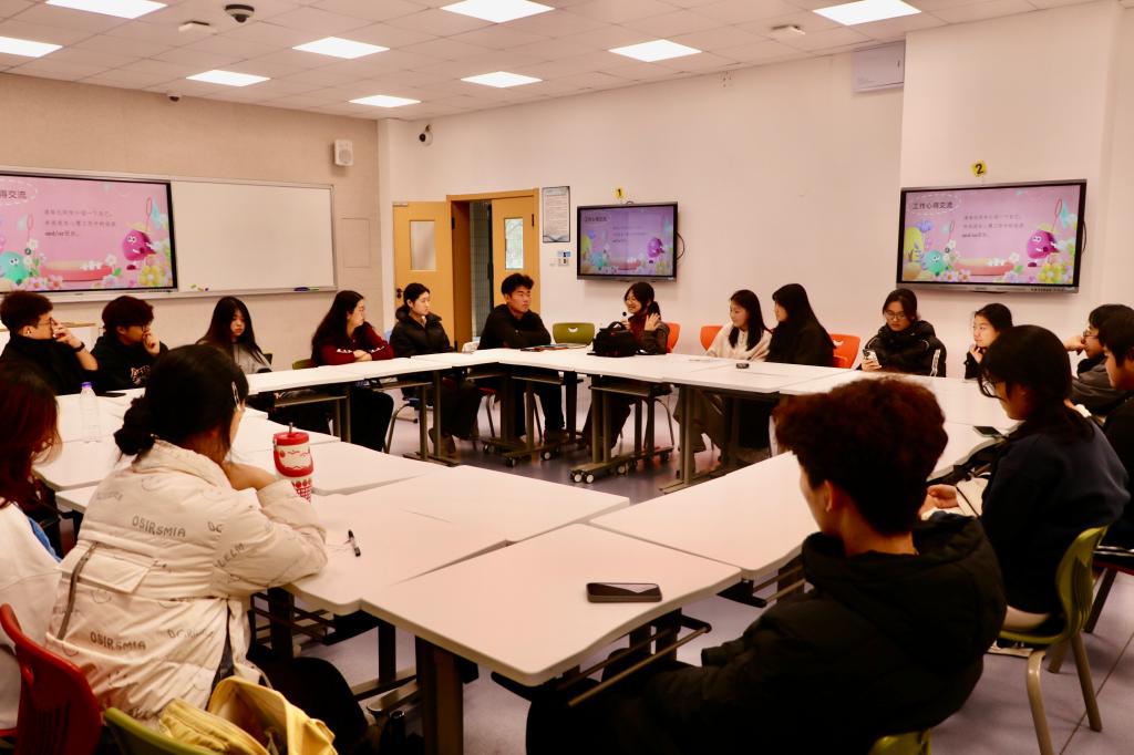为助力队伍建设,交流会特别邀请建筑工程学院团学执行主席常新宇分享实践经验。“让成员建立部门文化自信、树立主人翁意识,才能激活工作热情。”拥有三年心理朋辈工作经历的他,结合自身感悟提出核心观点,并分享了具体举措:为成员拍摄工作剪影定格成长瞬间、推行轮流手写会议记录强化参与感、引导设定个人学期目标明确成长方向。实用的方法引发共鸣,与会学生纷纷表示“干货满满,收获颇丰”。
