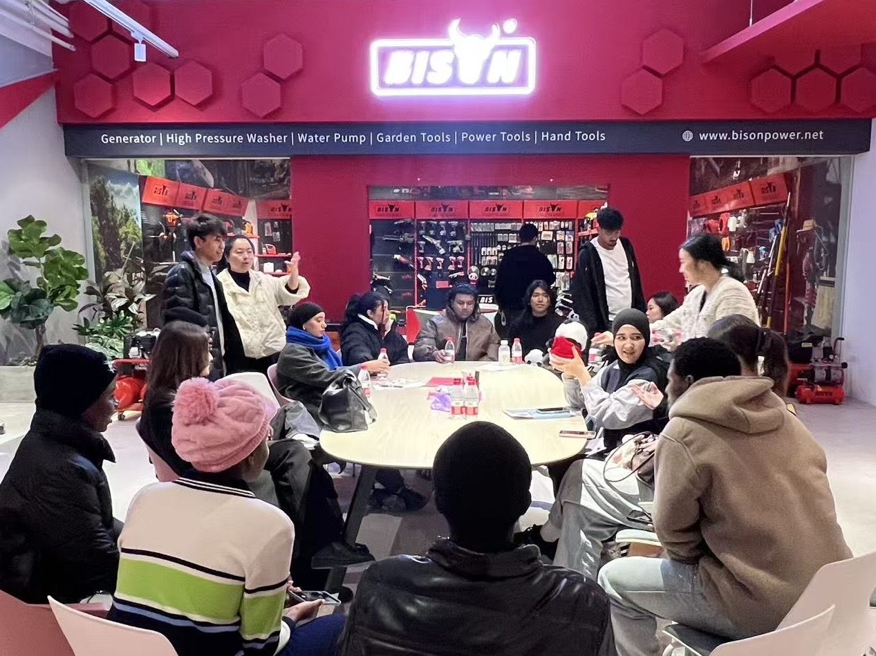 在为期三天的活动中,留学生们先后走进椒江、温岭、路桥等地的多家企业,涵盖机械制造、机电设备、工量刃具、汽车贸易、跨境直播等多个领域。在台州1688选品中心,学生们体验了跨境电商的全流程操作;在浙江文信机电,他们模拟广交会谈判,锻炼商务沟通能力;在温岭工量刃具交易中心,他们为台州产业出海建言献策;在绿田机械,他们围绕非洲市场本土化展开调研……通过实地参观、座谈交流、模拟实操等多种形式,留学生们不仅直观感受到台州制造的智能化、标准化与国际化水平,也深刻体会到企业对于“技术+语言+文化”复合型人才的迫切需求。