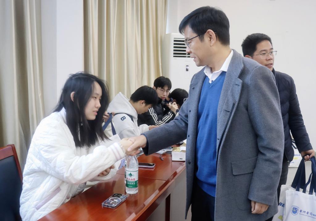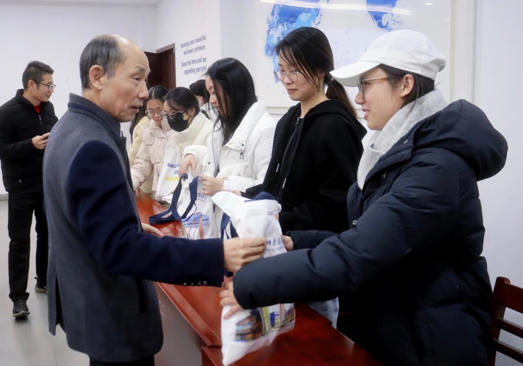 会上,王刚代表学院向全体奋战在备考一线的学子致以诚挚问候。他结合当前考研形势与外语专业特点,深入分析了冲刺阶段的关键任务,并强调在最后的关键时期,同学们要保持清醒的头脑、从容的心态,科学规划时间、注重方法策略,实现高效备考。会议结束后,学院领导们为同学们分发了学院精心准备的“考研大礼包”,每一份礼包都承载着学院的深切关怀与殷切期望。