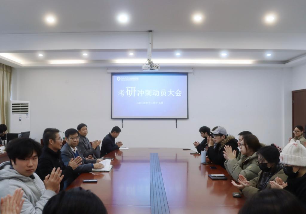 为鼓舞考研学子斗志、坚定备考信心,12月17日上午,外国语学院于4102会议室召开考研动员大会。学院院长王刚、党委书记李涛、副院长卢立伟、副书记鲁建波、副院长崔瑞国出席活动,与备考学子齐聚一堂,共同吹响冲刺号角。