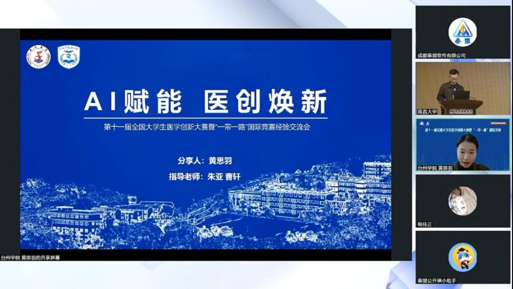 12月20日,第十一届全国大学生医学创新大赛暨“一带一路”国际竞赛经验交流会举办。医学院黄思羽团队(成员:袁瑜炫、李佳妮、胡津铭、马晨一)凭借全国金奖项目作主题分享,指导教师朱亚从育人角度介绍了指导经验,共同展示学院“医教协同、科创育人”的实践成果。