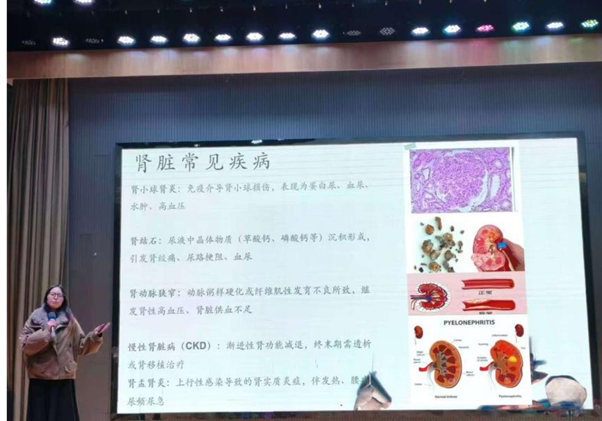 决赛首轮比拼按抽签顺序有序开展,8位晋级选手依次登台亮相,围绕人体结构相关主题展开6分钟限时讲解。选手们以清晰的逻辑、生动的语言化身“人体知识传播者”,将生涩的医学专业知识转化为通俗易懂的讲解内容:或借助动态示意图拆解心脏构造,或用模型演示还原骨骼肌收缩原理,或关联临床案例解读脊柱生理意义。精准的知识阐释、巧妙的演示设计与亲切的互动表达,让现场观众沉浸式感受人体科学的严谨与奇妙,赢得阵阵掌声。经过首轮激烈角逐,6位选手凭借扎实的专业功底和出色的讲解表现脱颖而出,成功晋级第二轮终极比拼。