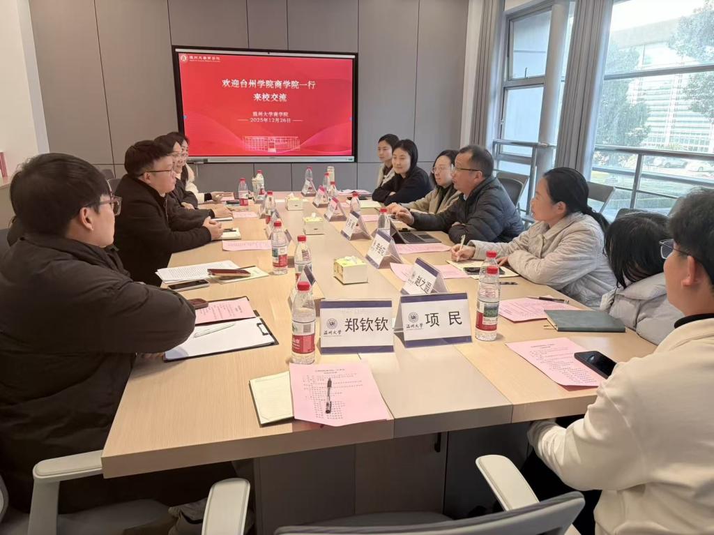 为提升学生工作质量,学习兄弟院校先进经验,12月26日下午,商学院党委书记马斌、党委副书记陈斌岚带领学院学工办全体辅导员一行,前往温州大学商学院开展交流学习活动,学习交流全国样板党支部培育和申报以及大学生创新创业竞赛指导等先进经验。