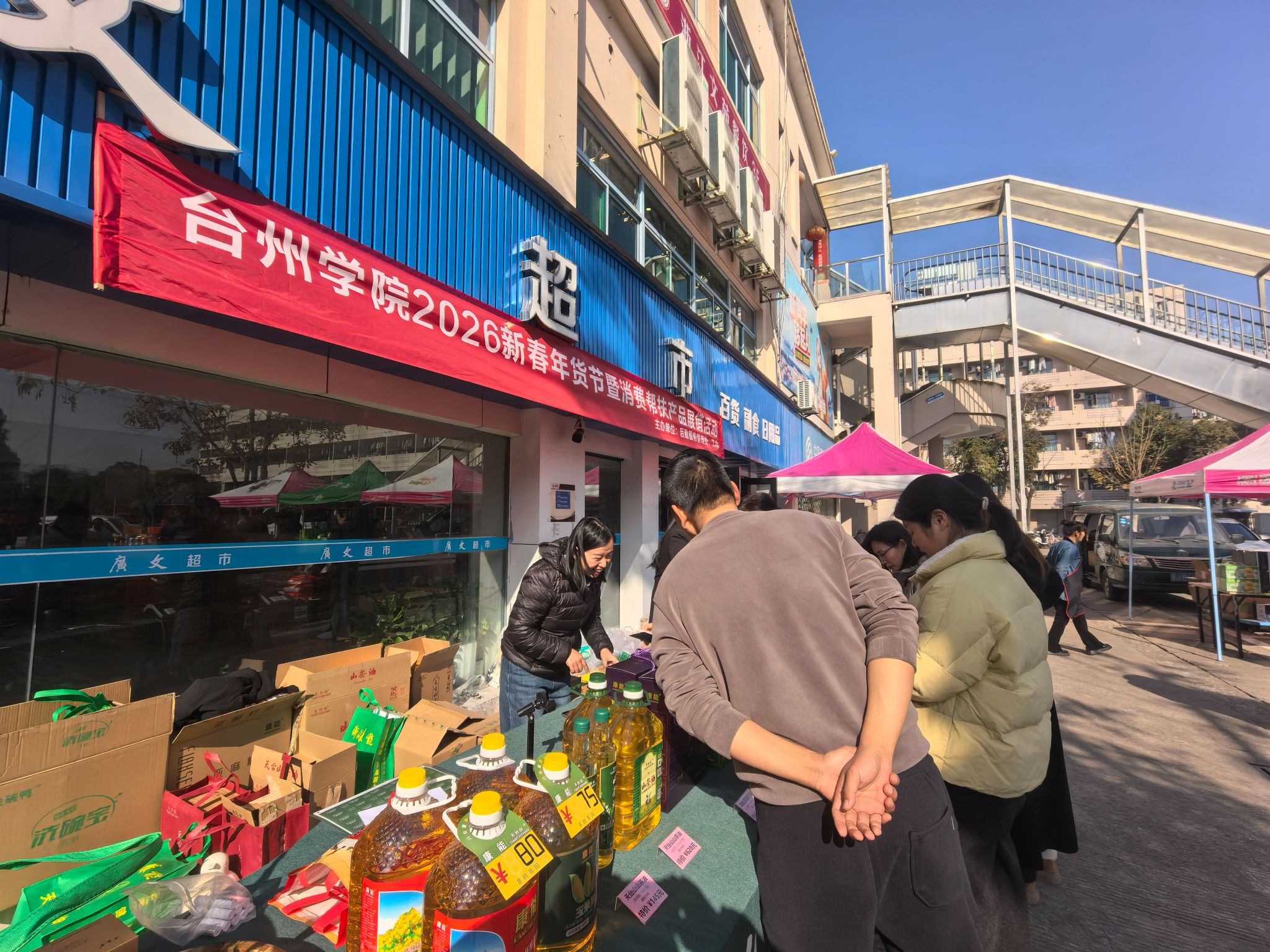 年关渐近,年味愈浓。为方便全校教职工一站式采购优质年货,1月13日至15日,由校后勤服务管理处、工会联合主办的“暖心年货惠台院 浓情欢聚幸福年”2026年新春年货节暨消费帮扶产品展销活动,在临海、椒江两校区相继温情启幕。