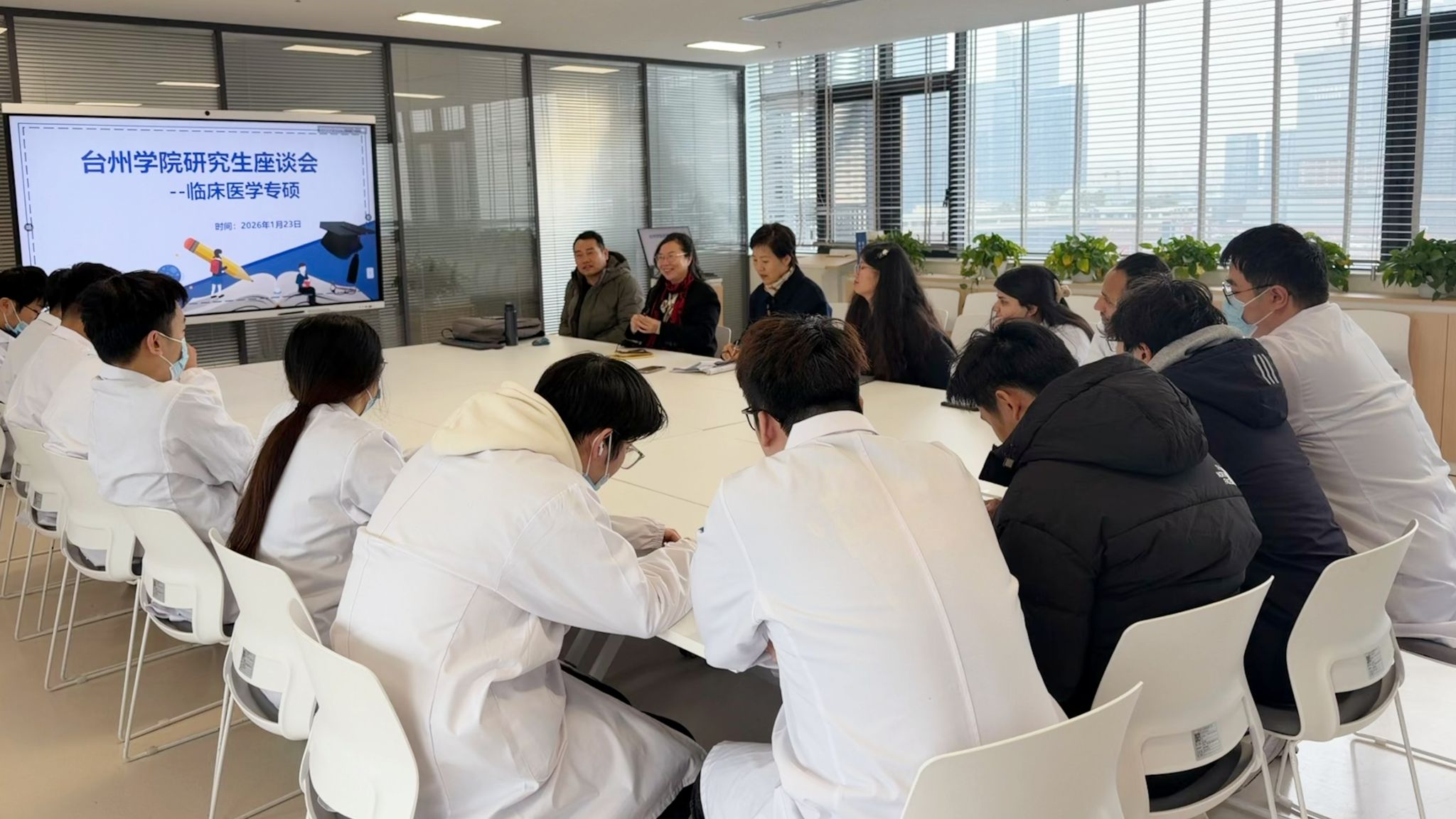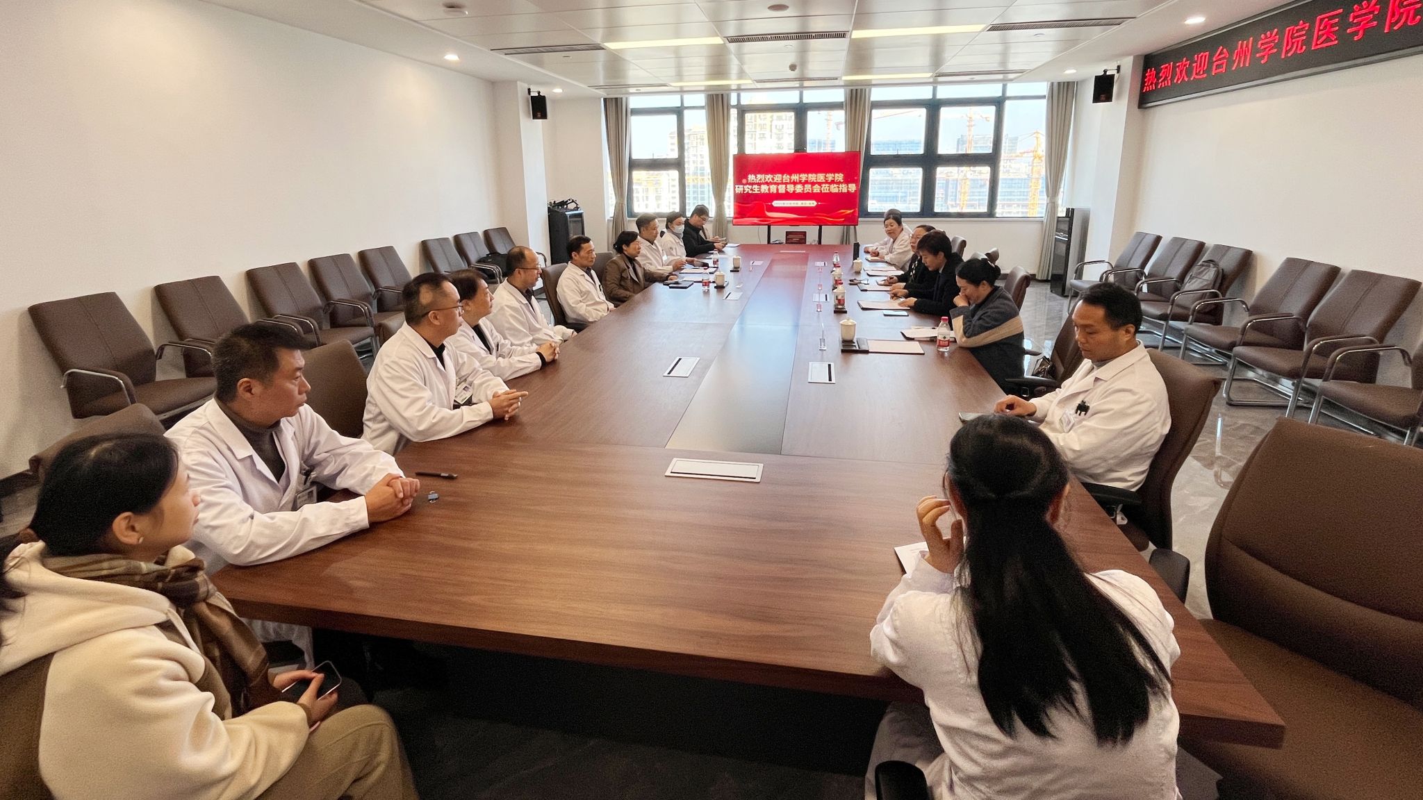 1月23日上午,医学院研究生培养检查工作组赴台州市中心医院(台州学院附属医院)开展研究生培养检查与交流。医院副院长卢洪胜、科教科主任徐玲珑热情接待检查组一行。作为距离台州学院最近的直属附属医院,台州市中心医院(台州学院附属医院)长期承担着大量研究生培养和临床教学任务,在研究生临床轮转、科研训练和教学组织等方面发挥着重要支撑作用。交流中,胡琼莹充分肯定了医院在研究生培养条件保障、导师队伍建设及教学管理等方面取得的成效,并就进一步规范培养流程、强化质量监控、提升研究生综合能力等提出了指导意见。医院方面对医学院长期以来在培养政策、教学支持和资源保障等方面给予的持续支持表示感谢。期间,检查组与医院临床医学及护理专业硕士研究生导师进行了深入交流,围绕研究生培养计划制定、科研能力提升及职业发展规划等内容开展针对性指导。同时,工作组还与在院培养的11名中国籍研究生和2名外籍留学生进行了面对面座谈,详细了解其在临床学习、科研训练及生活适应等方面的实际情况,现场回应学生关切的问题,进一步增强了研究生培养工作的针对性和实效性。此外,医学院还同步对相关国家级住院医师规范化培训基地开展研究生培养检查工作,包括台州市第一人民医院。通过实地走访与交流,全面了解研究生在不同培养基地的培养质量与管理运行情况,推动培养标准统一、过程规范。