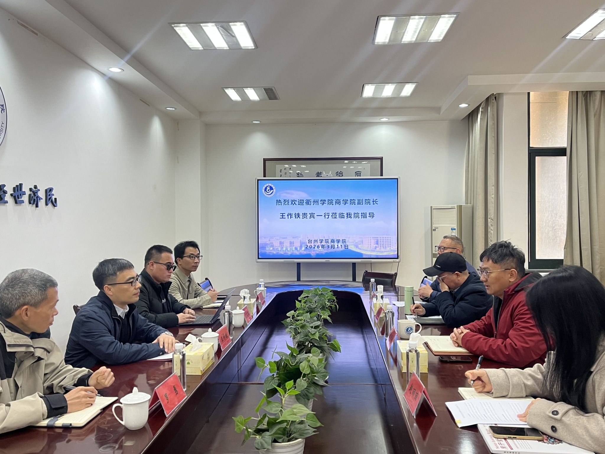 3月11日,衢州学院商学院副院长王作铁一行来校考察交流。商学院旅游管理系系主任赵丽丽、金融学系系主任蒋俊贤及相关教学秘书出席座谈会,商学院陈国栋主持会议。