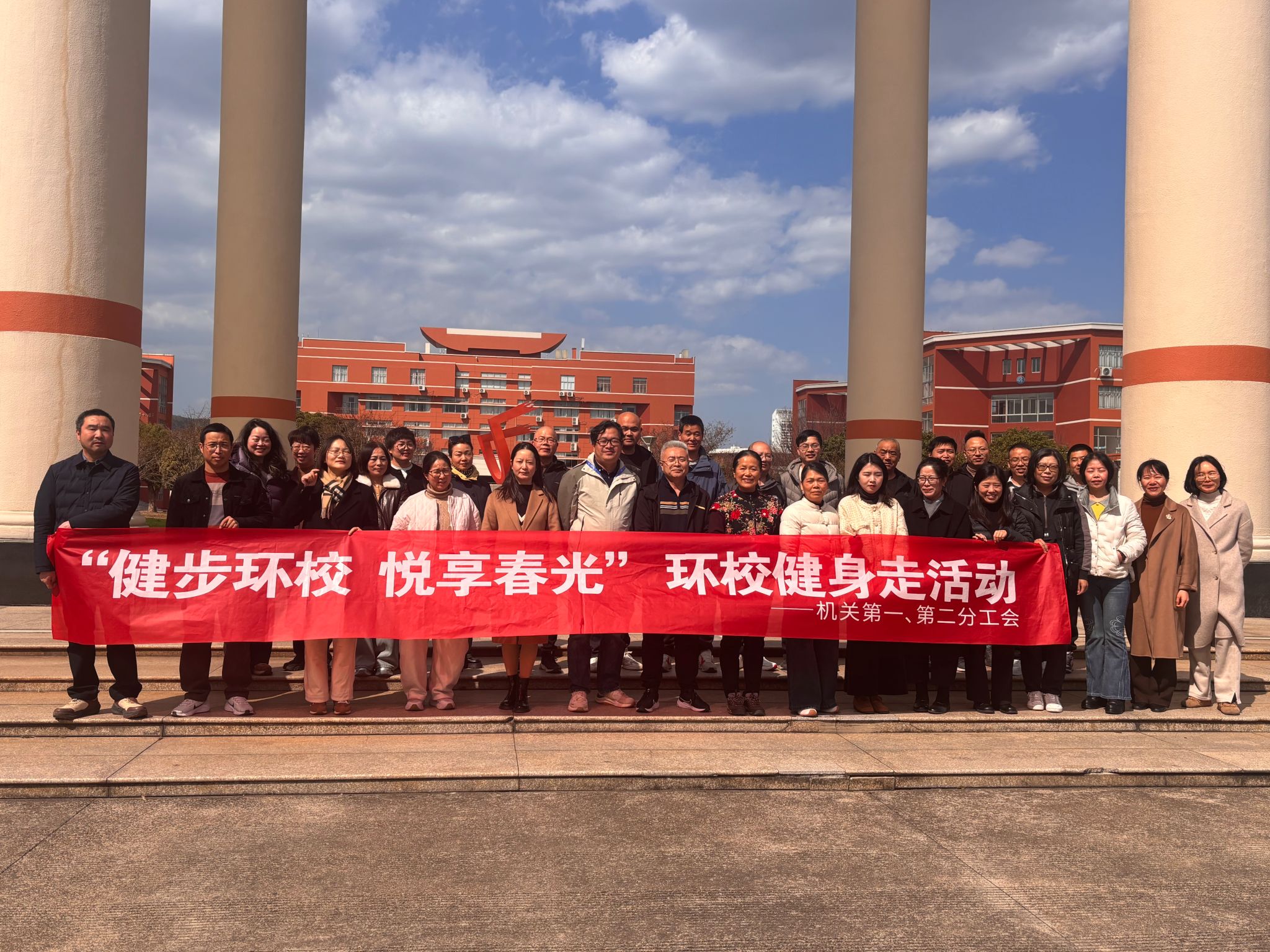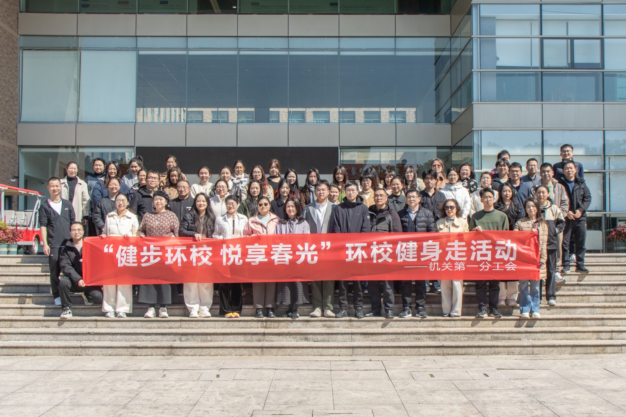 机关一二分工会参与活动的老师们早早来到集合地点,个个精神抖擞,脸上洋溢着期待与兴奋。在简短的热身后,健身步走活动正式开始。沿途玉兰花开,鸟鸣清脆,老师们卸下工作疲惫,或快步前行、舒展筋骨,或并肩闲谈、交流工作心得与减压妙招,不少人拿出手机记录沿途风光与同事笑脸,氛围轻松融洽。浩浩荡荡的健步队伍,成为春日校园里一道充满活力的风景线,充分展现了机关教职工团结协作、务实奋进的良好风貌。经过一个多小时的行程,所有参与的教职工都顺利完成了健身走活动。老师们纷纷表示要以更加强健的体魄、更加高效的作风、更加务实的担当,为学校教育事业高质量发展提供坚实的服务保障。