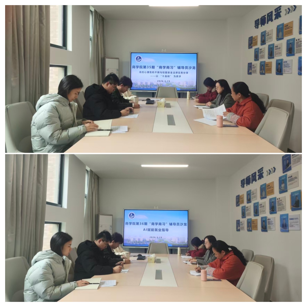 为提升商学院学生工作专业化水平,3月19日上午,商学院在105会议室举办“商学商习”辅导员沙龙,共同学习校园安全法律实务以及AI技术在就业指导中的应用,商学院党委副书记陈斌岚及全体辅导员参加此次沙龙。