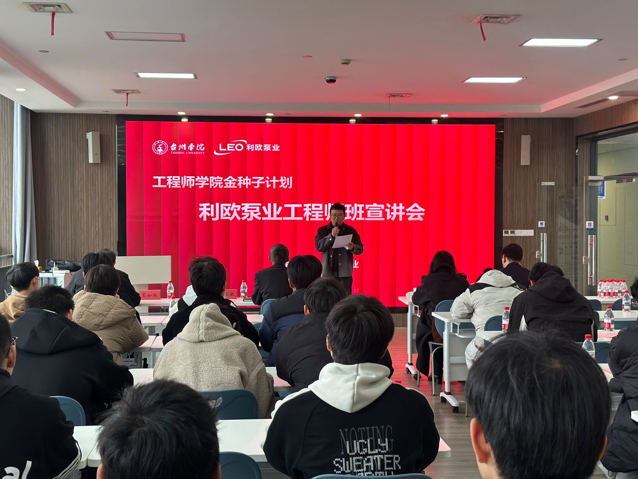 为深入推进产教融合,做实“金种子计划”工程师培养模式,打造“最关爱学生的大学”,拓宽学生实习实践与职业发展路径,3月19日下午,工程师学院举办“利欧泵业工程师班”联合培养项目宣讲会。利欧集团浙江泵业有限公司人力资源总监徐婧,工程师学院执行院长范剑、党总支副书记王灵敏出席活动,利欧泵业人力资源经理颜林茜作主题宣讲,来自机械和材料类专业的三十余名同学积极参加。