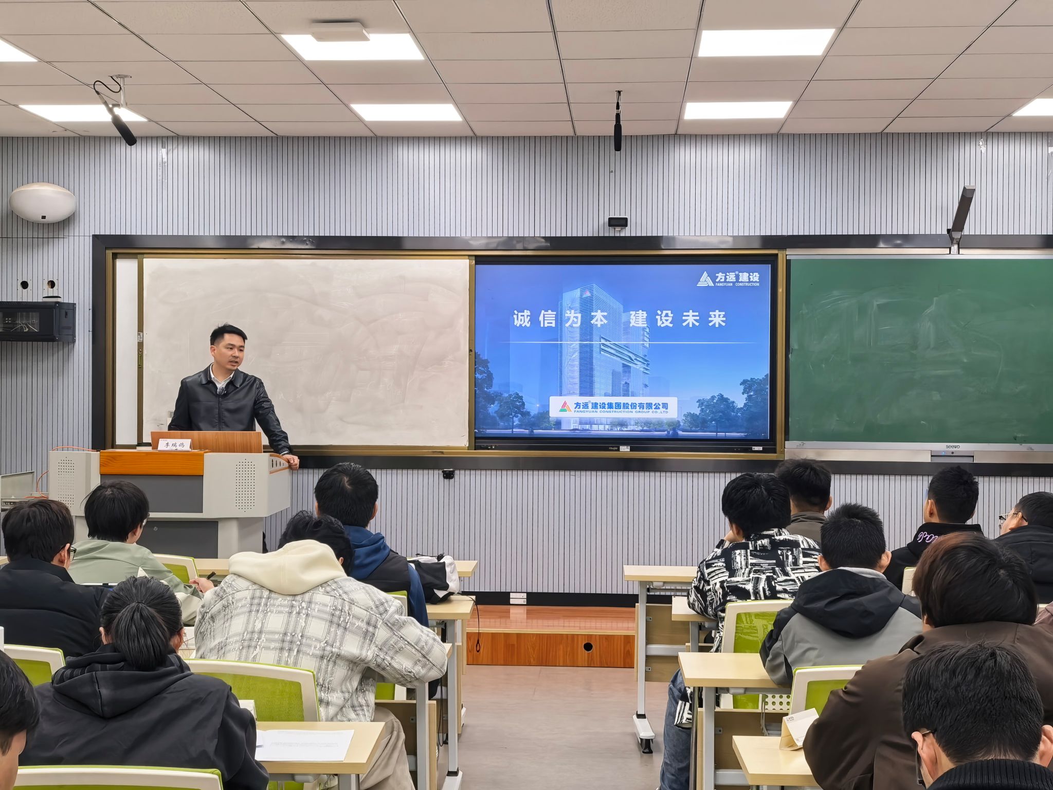 为进一步帮助2027届毕业生明晰职业发展方向,精准把握行业前沿趋势,提升求职核心竞争力,3月20日,台州学院建筑工程学院特邀方远建设集团股份有限公司董事、副总经理尹欢,为学院2027届毕业生进行就业与职业规划指导。