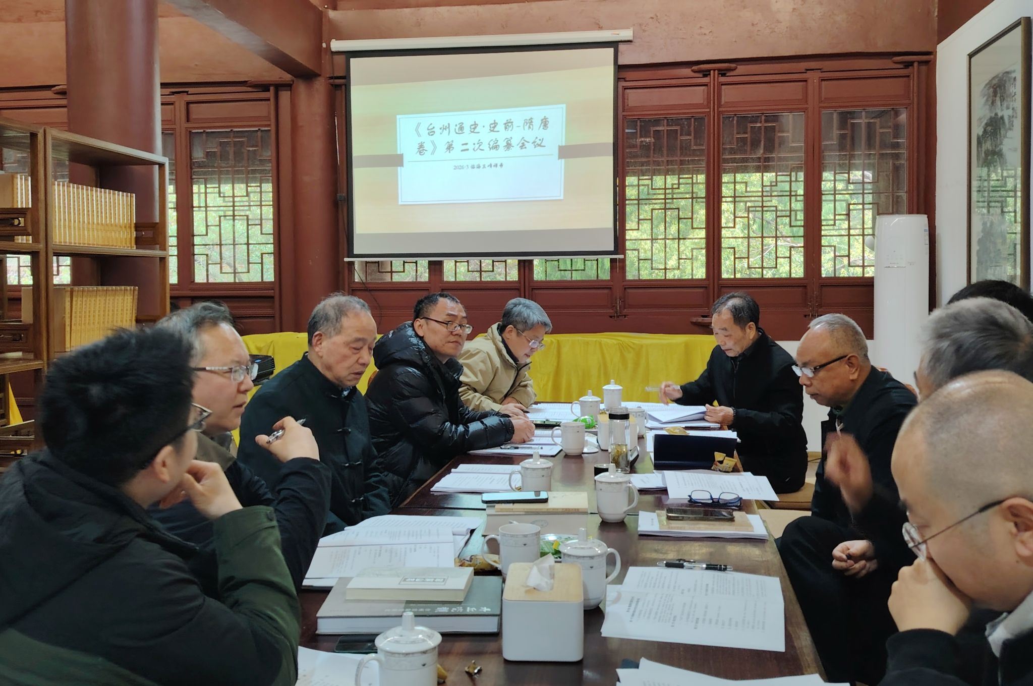 为扎实推进《台州通史》(史前-隋唐卷)编纂工作,严把质量关,凝聚团队共识,3月24日,《台州通史》(史前-隋唐卷)编纂推进会顺利召开。本次会议由台州学院人文学院主办,三峰禅寺承办,卢如平、马曙明、陈引奭、罗永华、徐三见、林大岳等台州文史专家与台州学院黄大树教授、李俊教授、郝金广副教授等学者齐聚一堂,围绕编纂进展、重点难点、分工安排等核心问题展开深入研讨,为高质量打造这部地方通史奠定坚实基础。