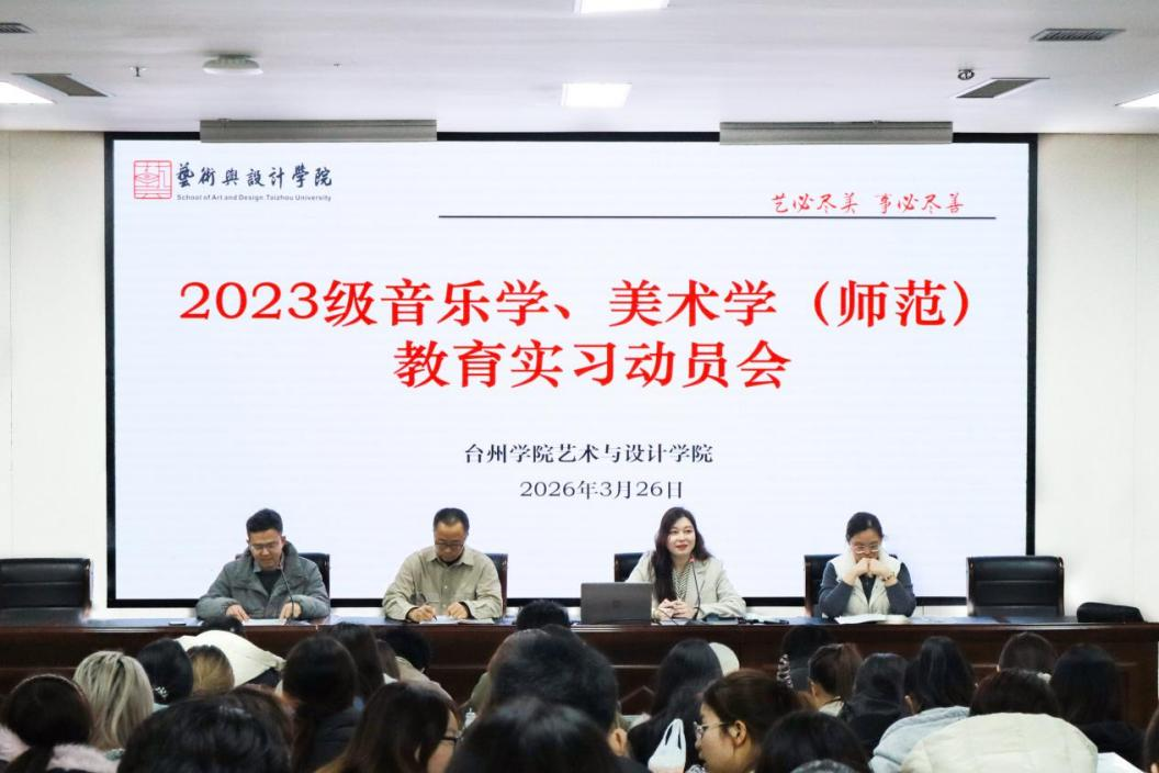 为保障教育实习工作高质量开展,切实提升师范生职业技能与综合素养,3月26日,艺术与设计学院召开了2023级音乐学(师范)、美术学(师范)专业教育实习动员大会。学院副院长赵振华、党委副书记王洁茹、美术系主任徐海军、学工办主任丁晶玲及实习指导教师出席会议,23级全体师范专业学生参加。大会由徐海军主持。