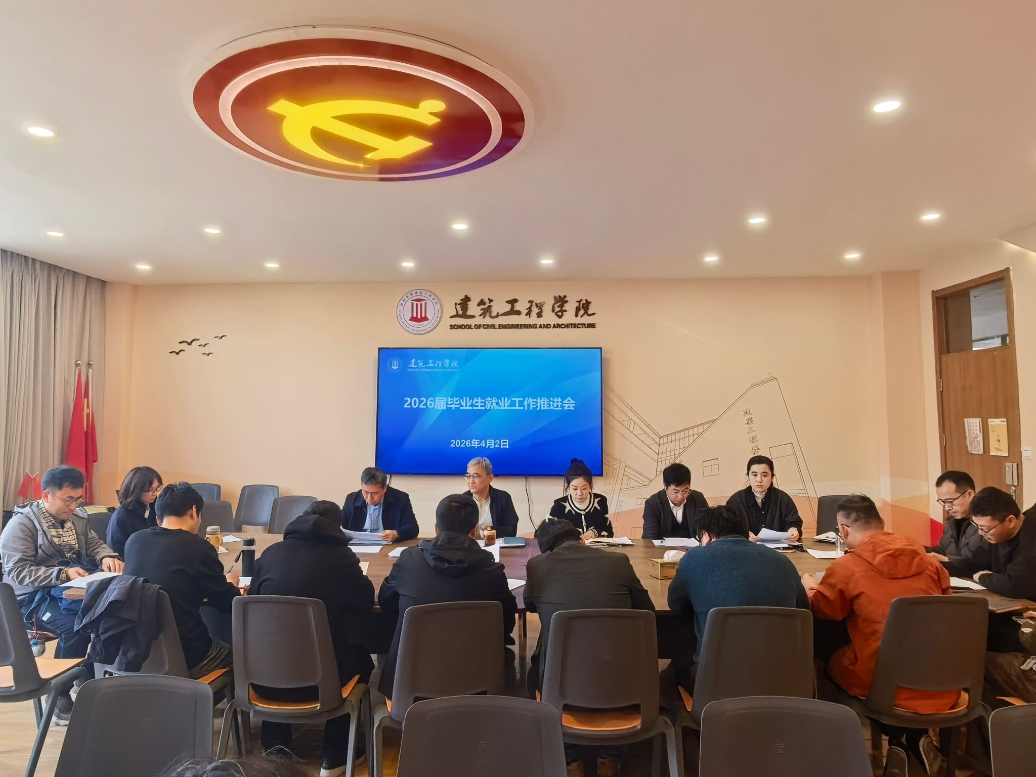 为扎实推进2026届毕业生就业工作,全力促进毕业生更加充分、更高质量就业,台州学院建筑工程学院于4月2日召开2026届毕业生就业工作推进会。会议由学院党委副书记汤爽主持,党委书记潘瑛、院长王小岗、副院长熊浩、各学科主任、全体辅导员及毕业班班主任参加会议。