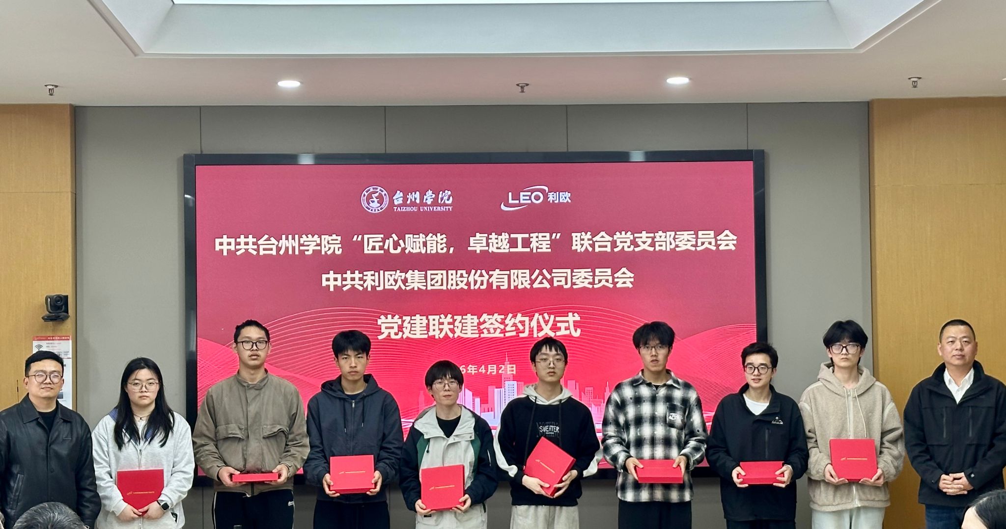 为进一步深化产教融合、校企合作,充分发挥党建引领作用,推动卓越工程人才培养与产业需求精准对接,4月2日,台州学院“匠心赋能,卓越工程”联合党支部与利欧集团股份有限公司党委党建联建签约仪式在利欧集团举行。双方领导、党员代表及首批“利欧工程师班”学员参加仪式。