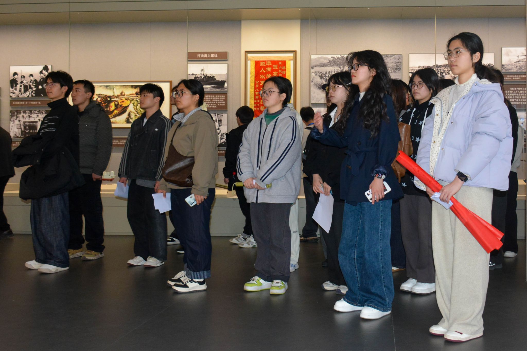 祭扫仪式结束后,师生们前往一江山岛登陆战纪念馆参观学习。在讲解员的细致引导下,一张张泛黄的老照片、一件件珍贵的历史文物、一段段生动的影像资料,将大家带回那段烽火连天的革命岁月。大家驻足凝视、认真聆听,深入了解一江山岛战役的艰难历程与烈士们的英雄事迹,深刻体会到革命先辈们不畏艰险、英勇奋战的革命精神和家国情怀。