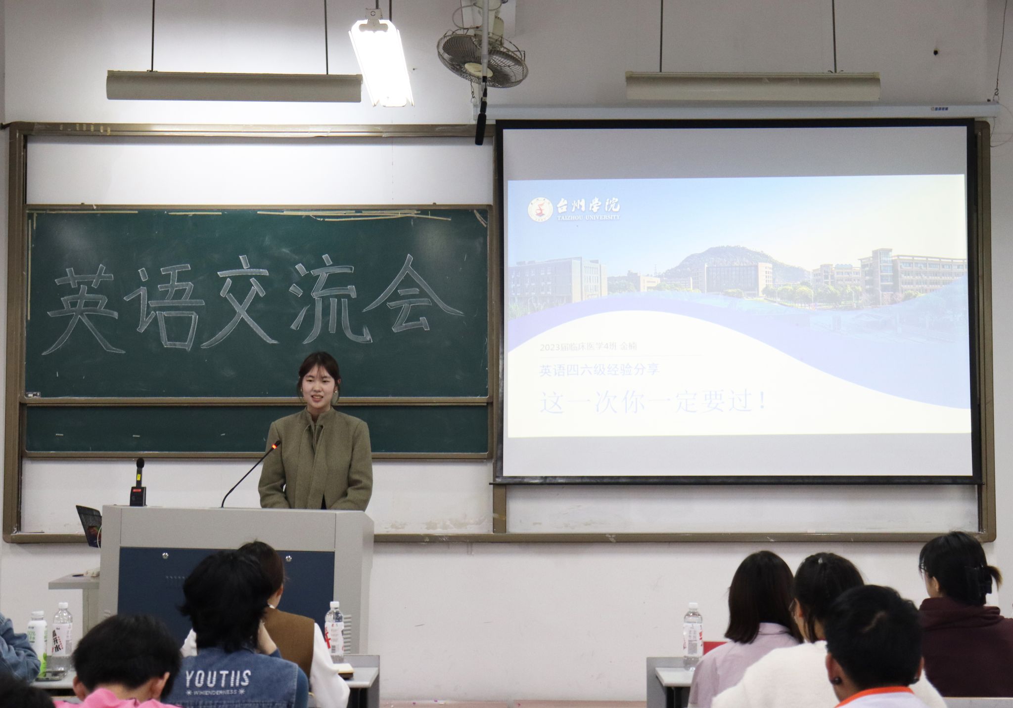 为提升学生英语综合能力,助力学子高效备考英语四、六级,医学院于4月9日晚在2-302教室举办英语学习交流会。23临床医学金楠(英语六级615分)、24临床医学曹越(英语四级608分)、25临床医学应礼慧(英语四级610分)担任分享嘉宾,80余位学生共同参与。