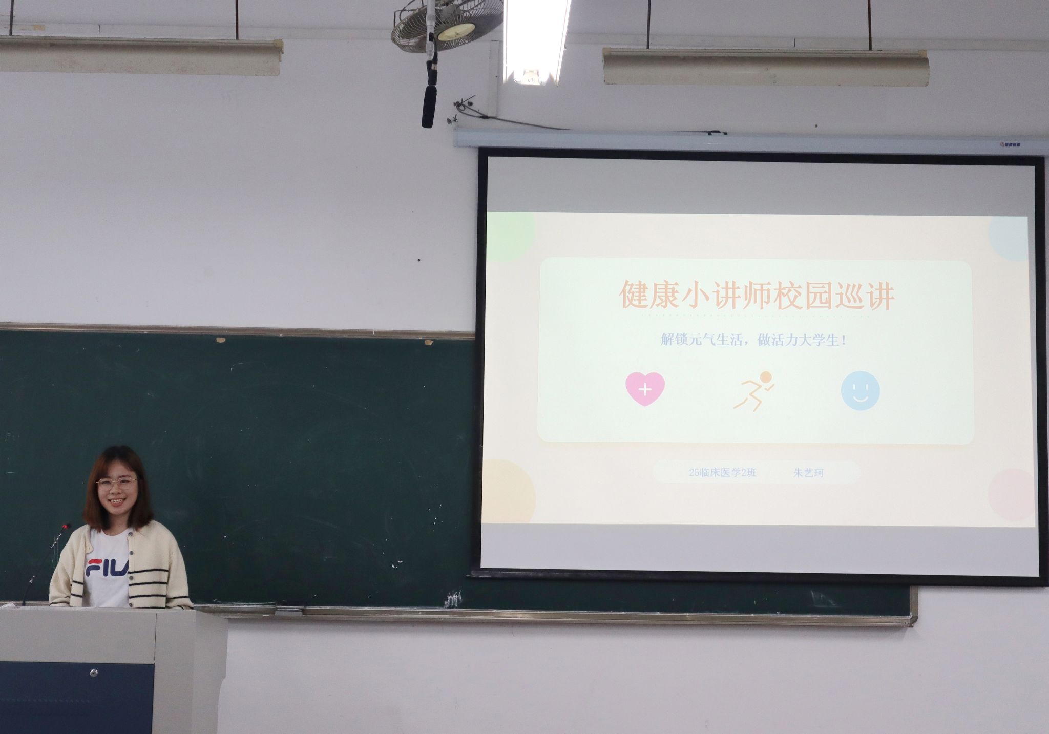 为深入普及健康知识,强化医学生的科普素养与实践应用能力,助力健康校园建设,4月9日下午,医学院于2-204教室举办“医路逐光,健行无疆”健康小讲师复赛。医学院分团委书记李袁杰、团学会主席团成员出席活动并担任评委,各班级学生代表到场观赛,共同感受医学科普的魅力。