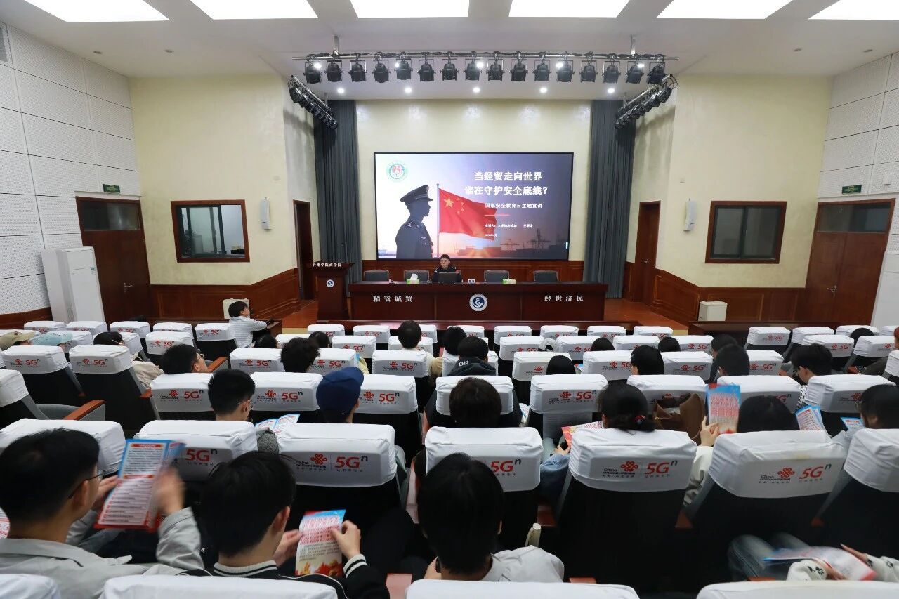 在第十一个全民国家安全教育日即将到来之际,4月13日晚,台州边检机关首次联合组建宣讲团队,走进商学院开展“国家安全进高校”主题宣讲活动,与国际经济与贸易专业的大一、大二学生进行面对面交流宣讲,共话发展与安全。