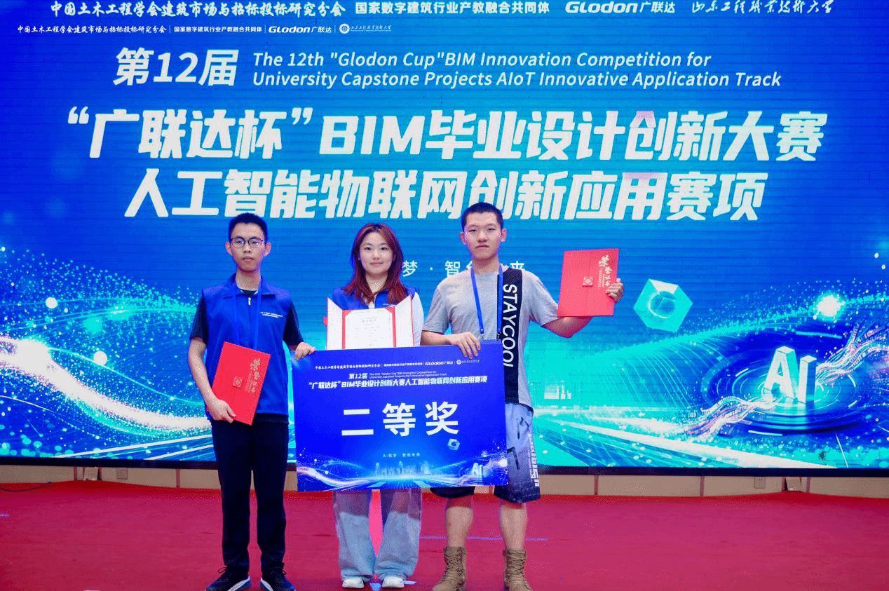 2026年4月19日,第12届“广联达杯”BIM毕业设计创新大赛(原全国高校BIM毕业设计创新大赛)人工智能物联网创新应用赛项全国决赛在济南山东工程职业技术大学举行。台州学院建筑工程学院参赛团队凭借项目“安梯卫士——施工电梯AIoT智能安全控制盒”,荣获全国决赛二等奖。