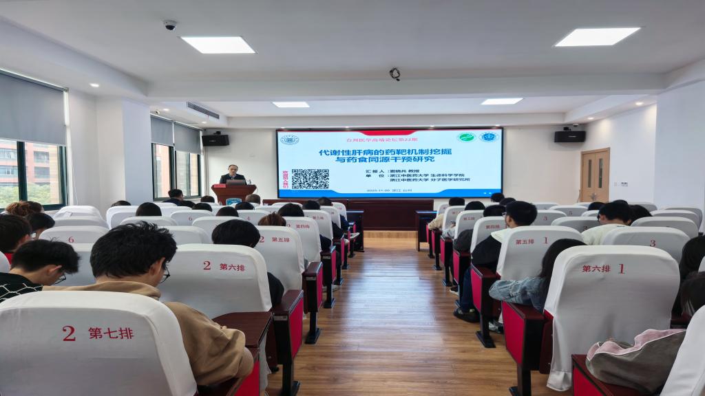 为贯彻执行全省中医药高质量发展大会精神和部署,深化中医药传承创新发展,加快建设中医药现代化先行省,为高质量发展建设共同富裕示范区作出更大贡献,11月6日,医学院举办台州医学高端论坛第22期活动暨中医药学科发展研讨会。活动邀请浙江中医药大学窦晓兵教授作专题学术报告,华中科技大学同济医学院陈娟教授、河南中医药大学吴耀松教授出席研讨会。医学院院长曹轩教授主持会议,学院党委副书记周敏、学科与科研办副主任王祥虎、台州学院附属市立医院中西医结合康复科党支部书记、副主任中医师罗建昌及医学院师生代表80余人参加活动。
