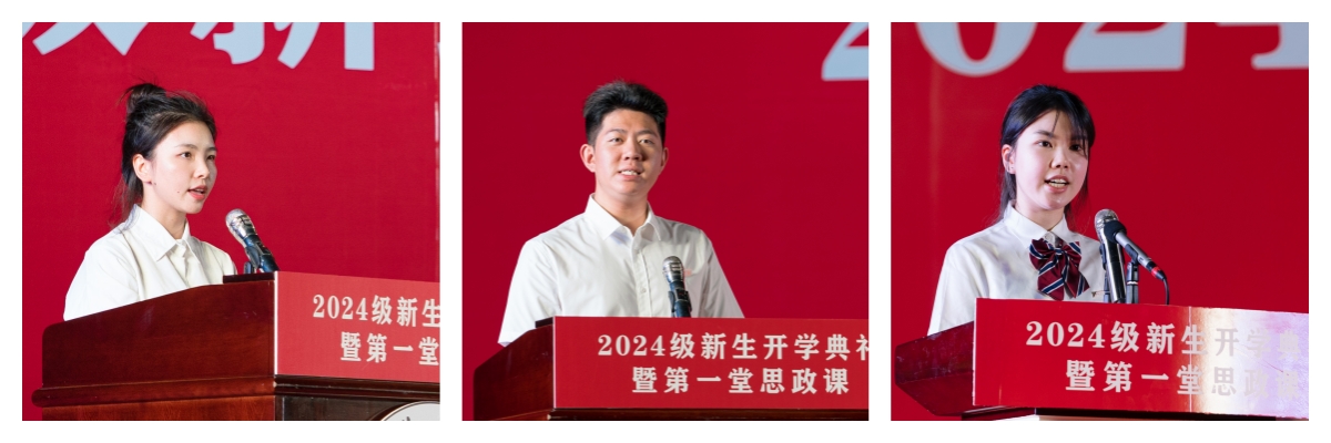 胡春丹(左)、刘皓天(中)、沈奕涵(右)作为新生代表发言
