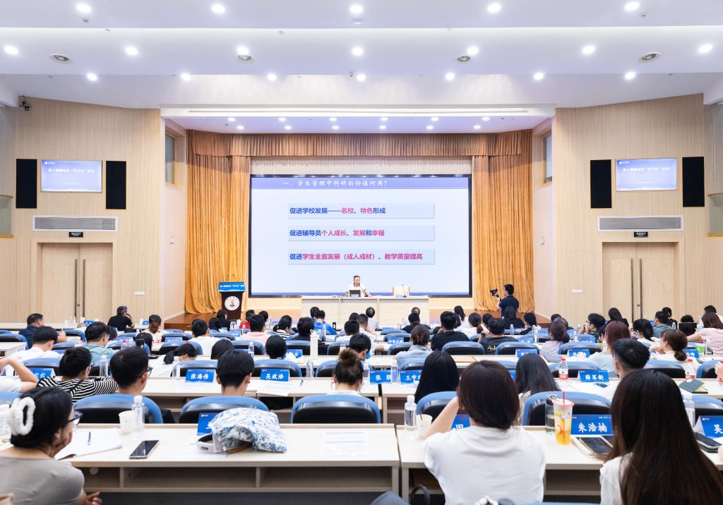 8月28日下午,校长、党委副书记乐传永走进第八期辅导员“学习日”活动,为全体辅导员作专题报告。校党委副书记项凤日主持,校党委委员、宣传部部长蔡海江出席,思政工作例会成员、全体辅导员及新生班主任代表等120余人参加。