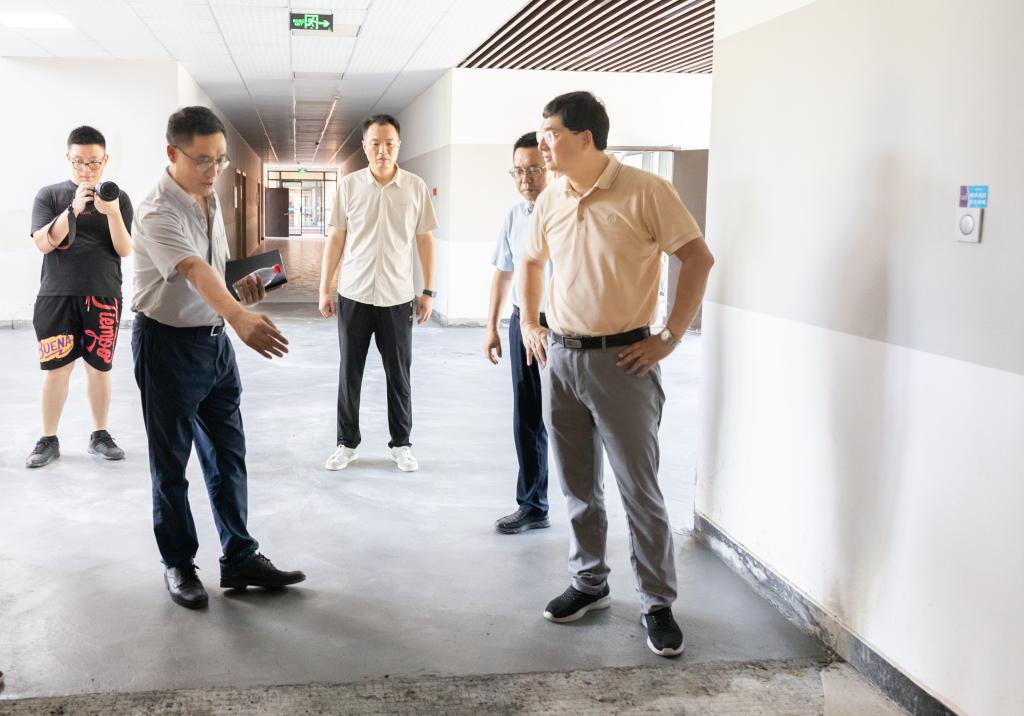 朱坚还走访慰问了学校后勤处、保卫处、图书馆和信息技术中心教学环境改造项目相关人员,每到一处都与大家亲切交谈,了解大家的生活情况,仔细询问大家暑假期间的各项工作安排和进度计划,对大家顶着酷暑坚守岗位的责任心和扎实认真的工作态度表示高度赞扬,叮嘱大家要增强安全意识,继续坚守岗位,做好学校暑期的各项保障工作。