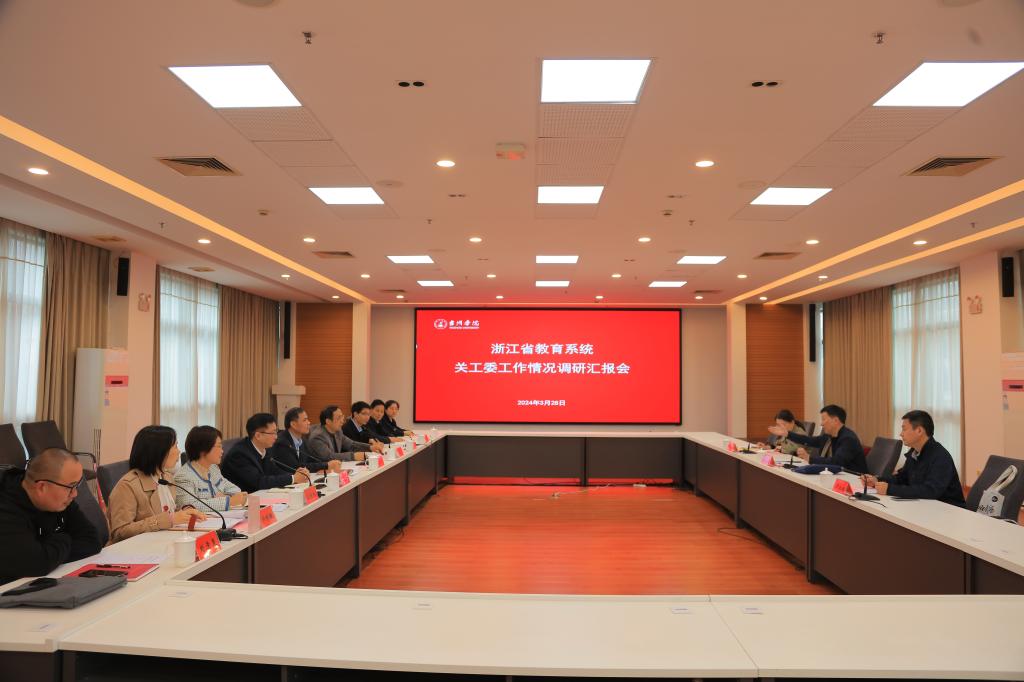 3月28日上午,浙江省教育系统关工委工作情况调研汇报会(台州站)在台州学院召开。省教育厅关工委副主任叶向群主持会议并讲话,浙江工业大学离退处处长、关工委秘书长罗民超,浙江财经大学离退处党委书记、处长、关工委秘书长叶秀陪同调研。台州学院党委副书记、关工委主任胡韶光,校党委委员、组织部部长、统战部部长、关工委常务副主任吴银银接待调研组,台州市教育局、台州科技职业学院、浙江汽车职业技术学院关工委负责人参加会议。